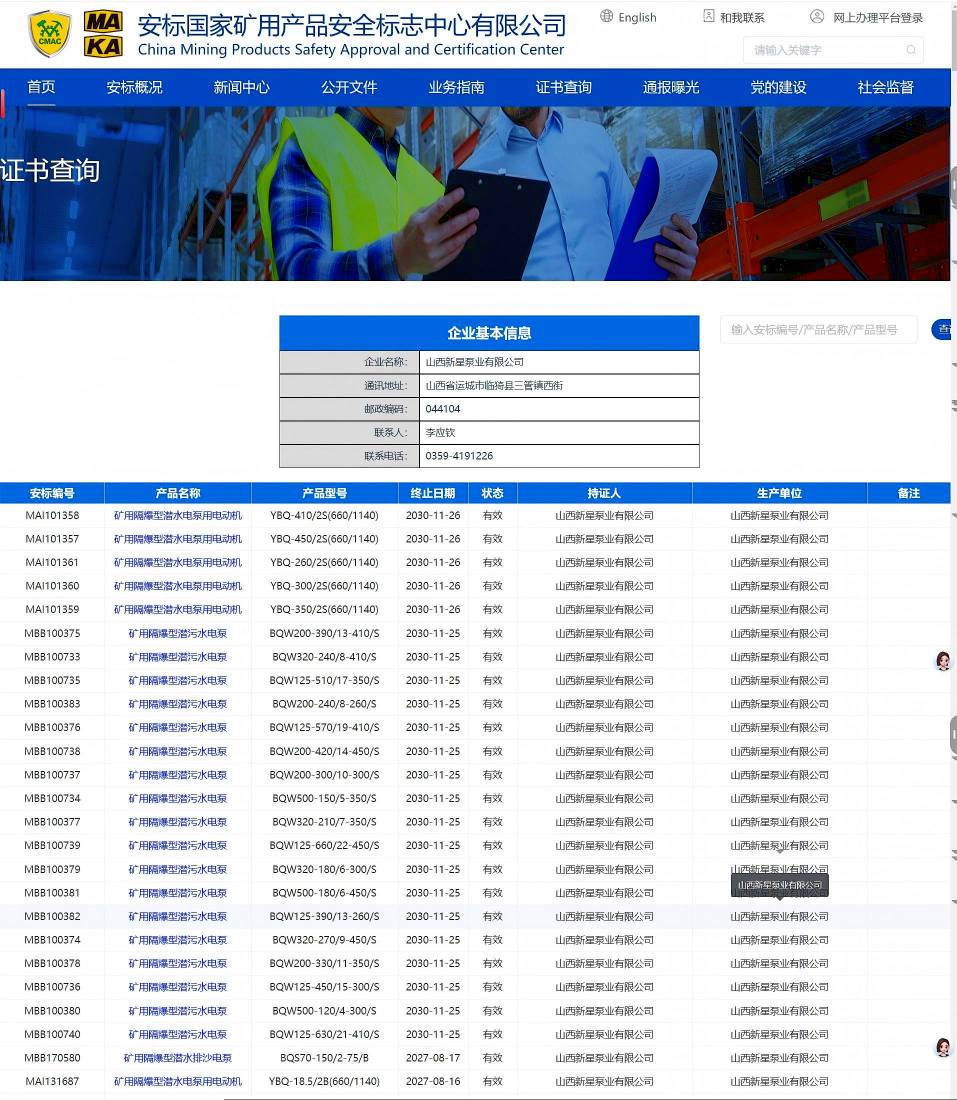260-450KW煤安證書與防爆合格證書國家安標網(wǎng)已公示,查看明細。